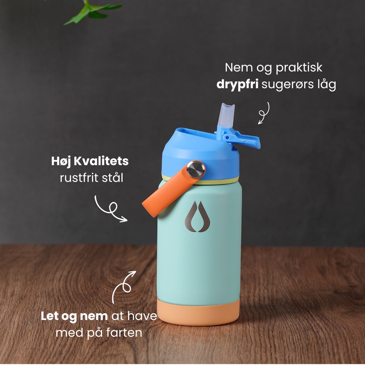 Flasken med sugerør låg (samt sugerør inde i flasken) gør det nemmere – og renere – at holde sig hydreret. Flasken er lavet i rustfrit stål med dobbeltvægget vakumisolering,