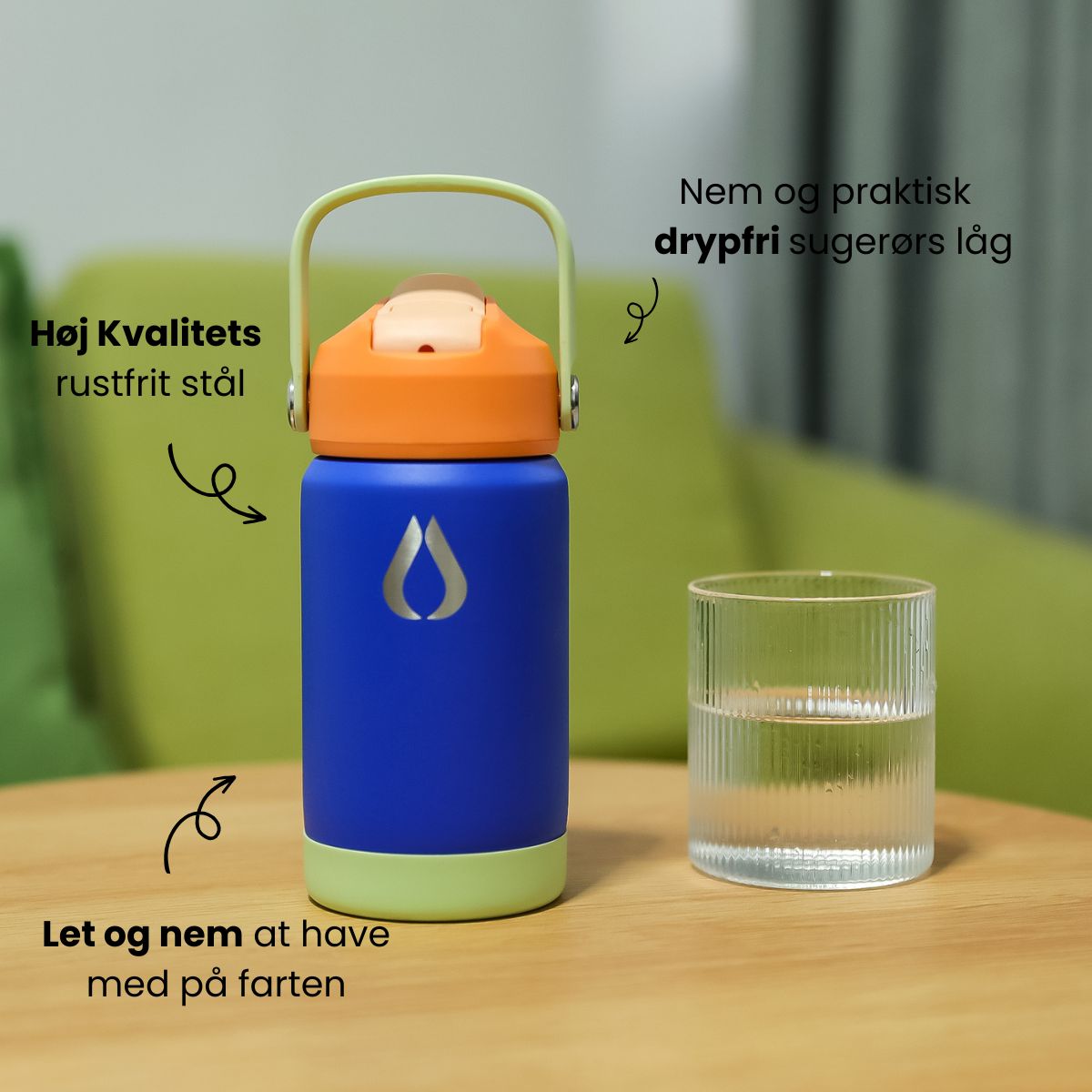 Flasken med sugerør låg (samt sugerør inde i flasken) gør det nemmere – og renere – at holde sig hydreret. Flasken er lavet i rustfrit stål med dobbeltvægget vakumisolering,