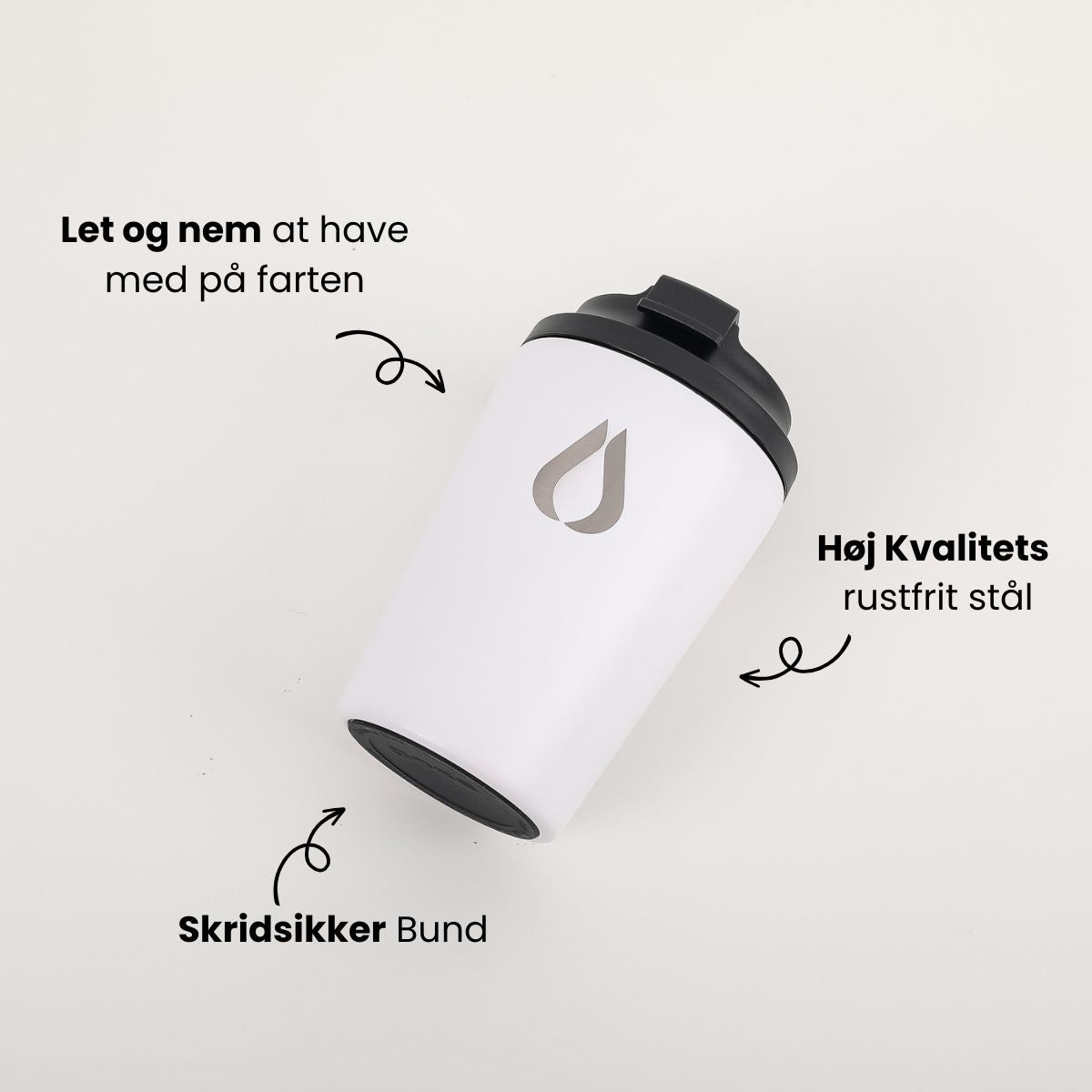 Hver eneste dag ender millioner af engangs kaffe krus i skraldespanden.Kaffe koppen fra Nordic Drop kan bruges igen og igen og er super let at rengøre - Den tåler opvaskemaskine og da den er lavet af rustfrit stål med thermo effekt holder den på varmen i helt op til 6 timer.Låget sørger for at koppen både er tæt og gør det praktisk let at drikke af.