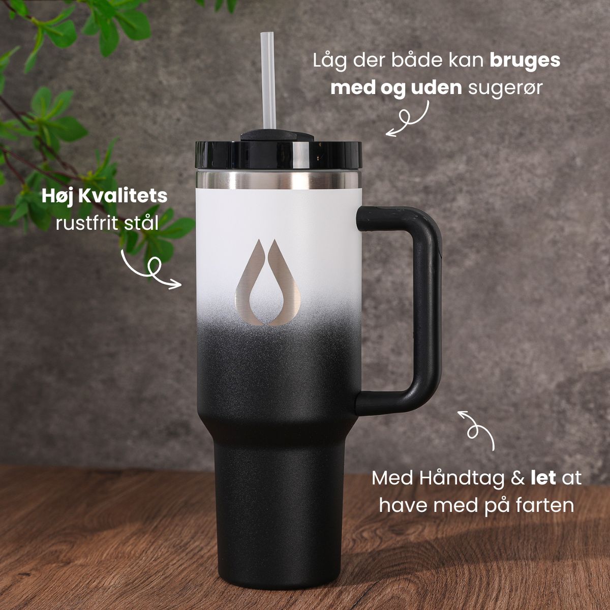 - Kommer med BPA-fri låg og sugerør