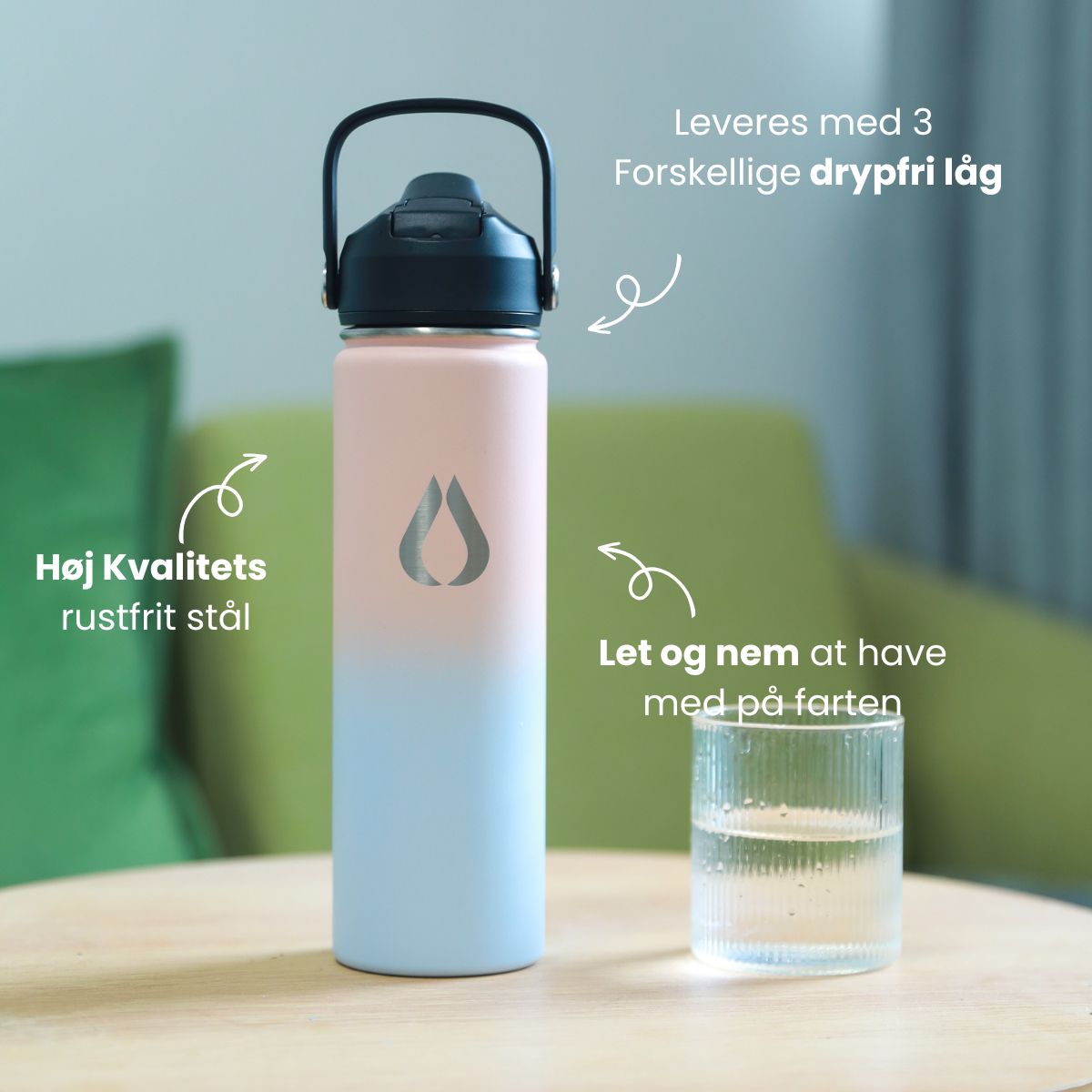 Flasken med tre forskellige låg gør det nemmere – og renere – at holde sig hydreret end