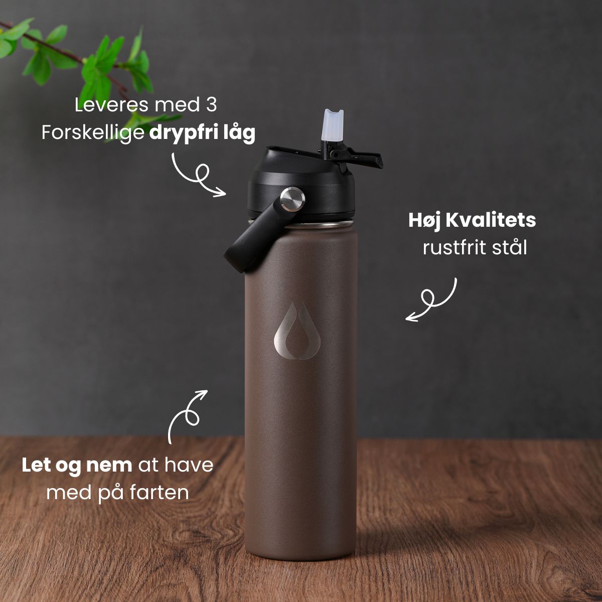 Flasken med tre forskellige låg gør det nemmere – og renere – at holde sig hydreret end