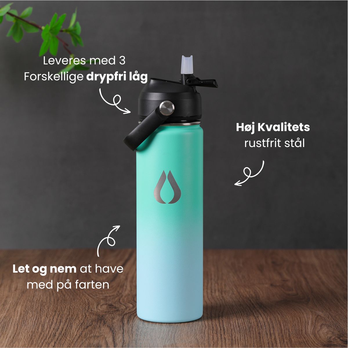 Flasken med tre forskellige låg gør det nemmere – og renere – at holde sig hydreret end
