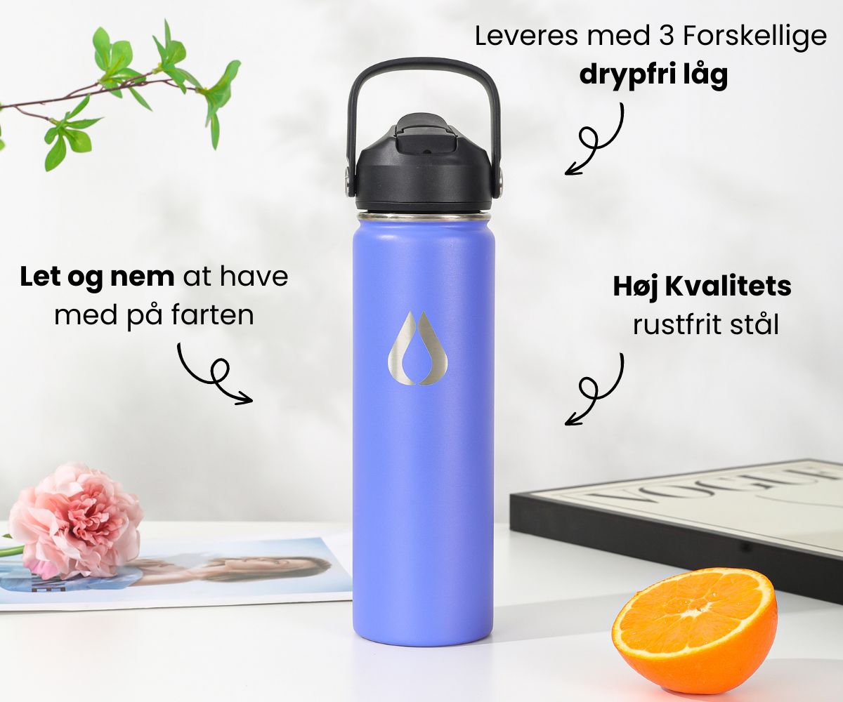 Flasken med tre forskellige låg gør det nemmere – og renere – at holde sig hydreret end