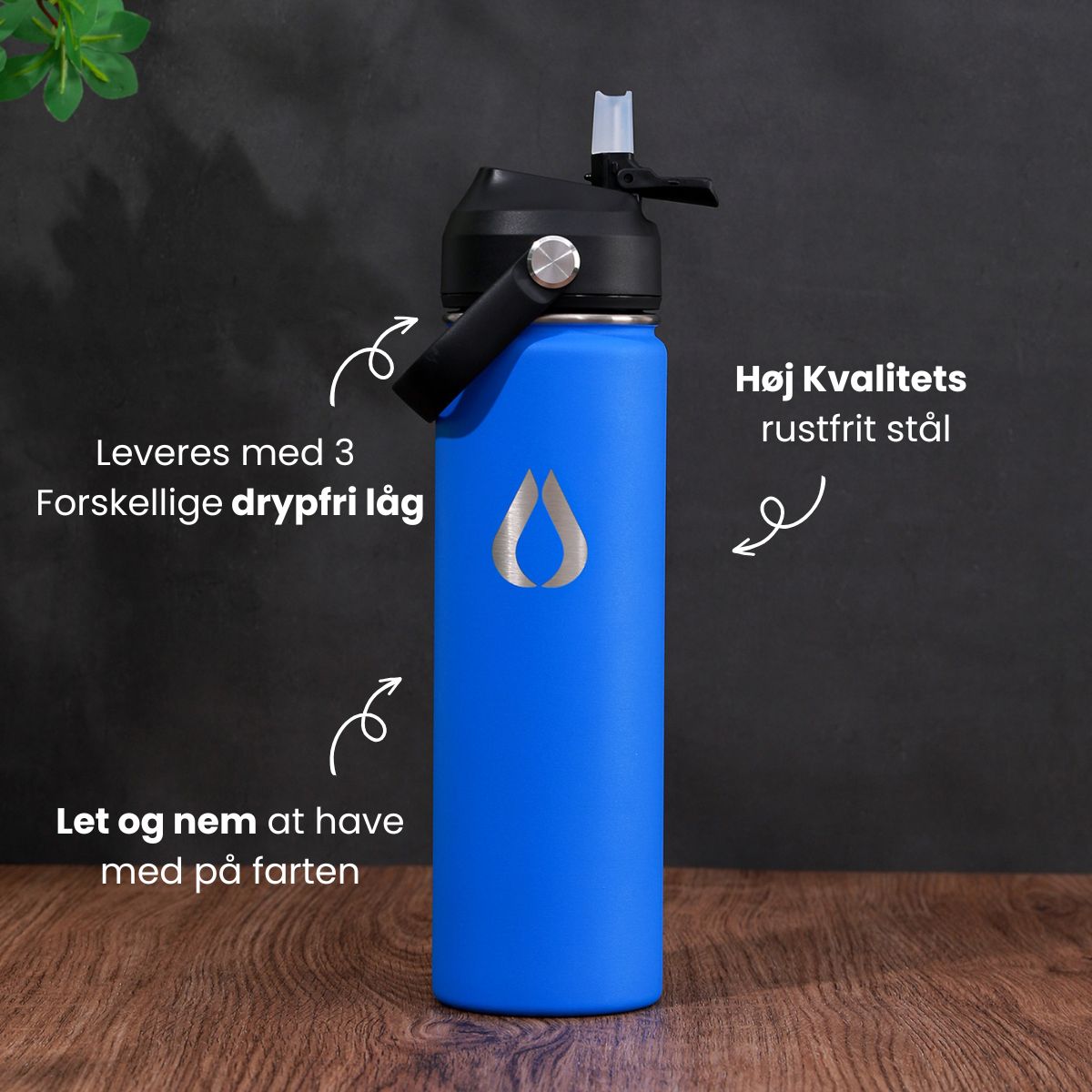 Alle vores flasker at lavet af høj kvalitets rustfrit stål som ikke kan ruste og gør det super nemt at rengøre flasken. Flasken er med vakumisolering så væsken holder temperaturen i meget lang tid.