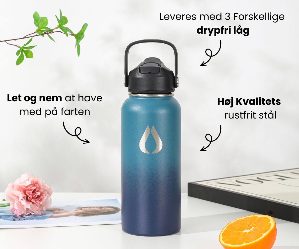 Flasken med tre forskellige låg gør det nemmere – og renere – at holde sig hydreret end