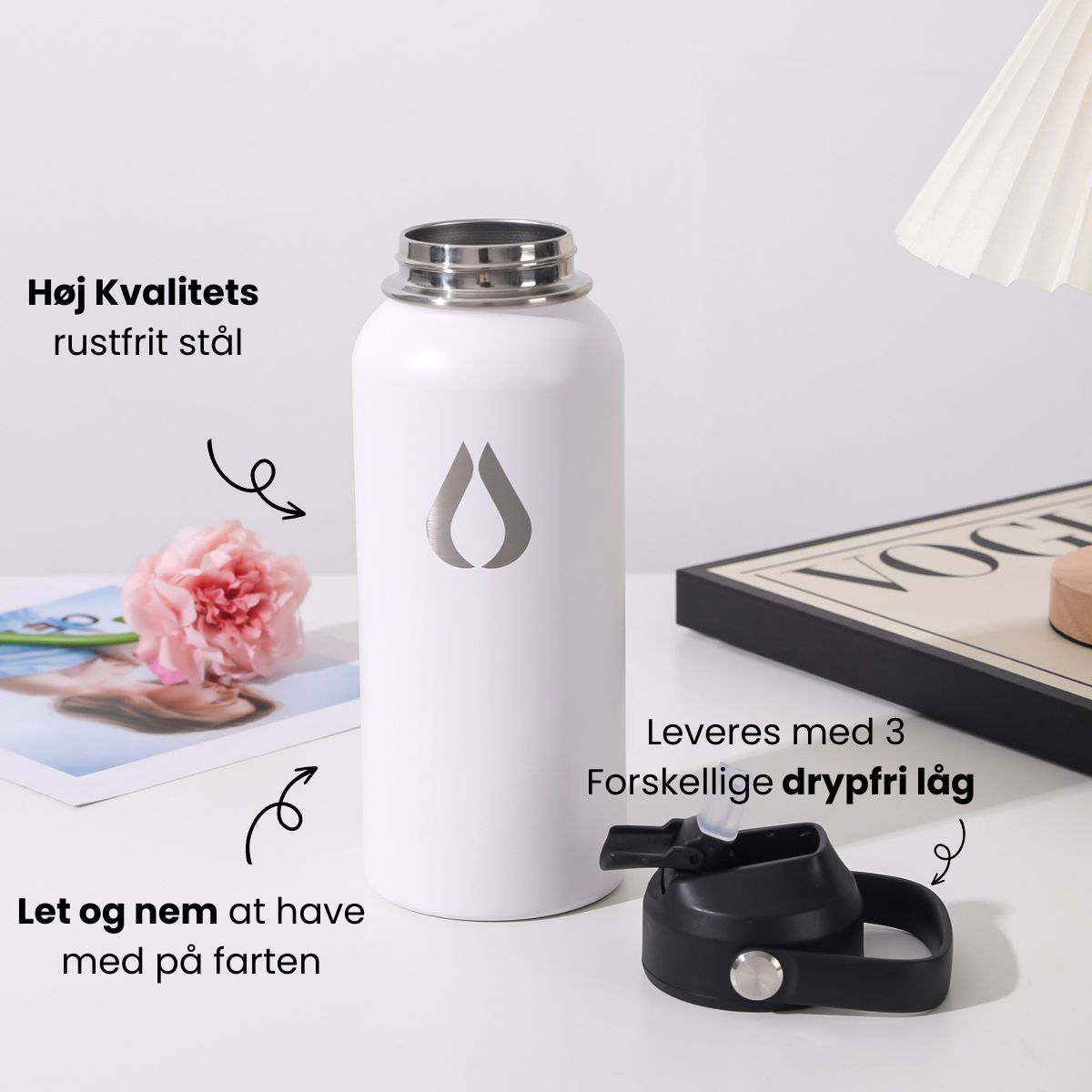 Vandflaske - 960ML - Hvid