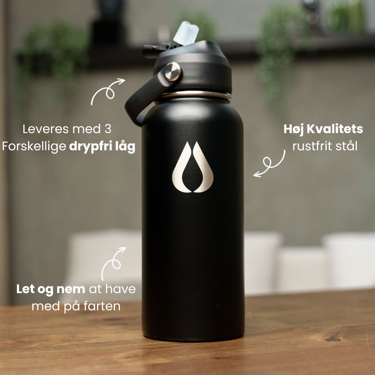 Flasken med tre forskellige låg gør det nemmere – og renere – at holde sig hydreret end