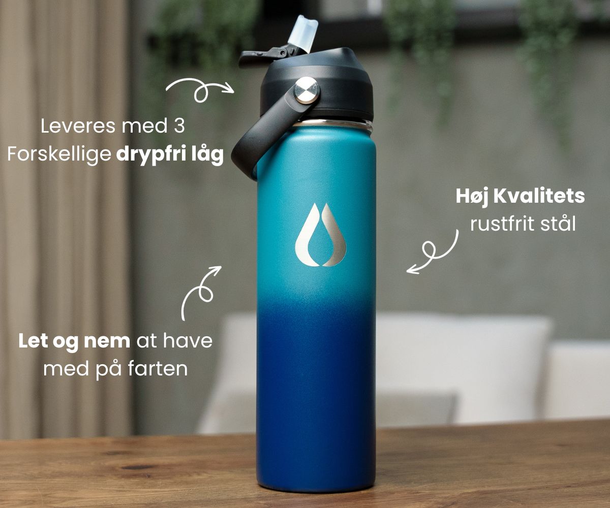 Flasken med tre forskellige låg gør det nemmere – og renere – at holde sig hydreret end