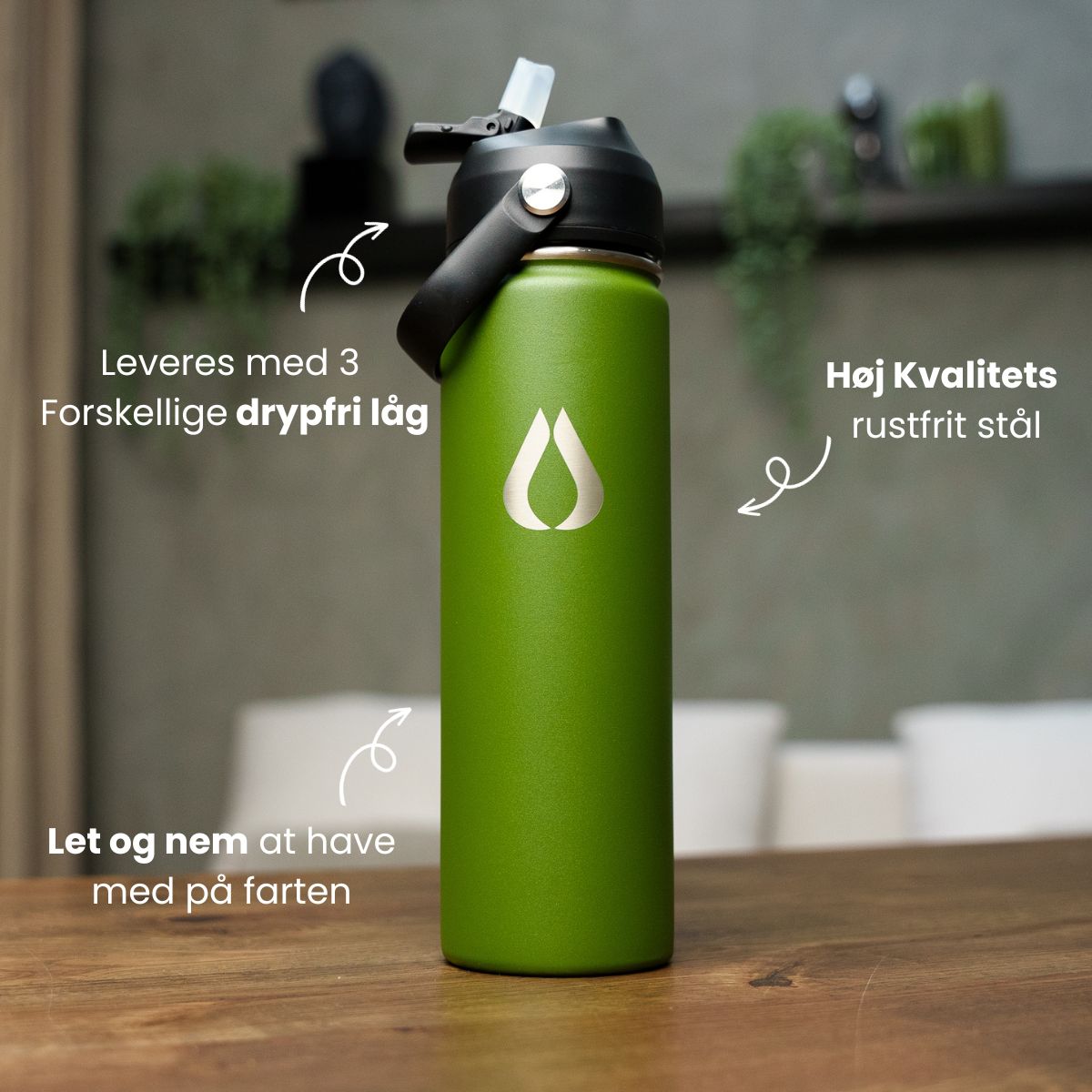 Flasken med tre forskellige låg gør det nemmere – og renere – at holde sig hydreret end