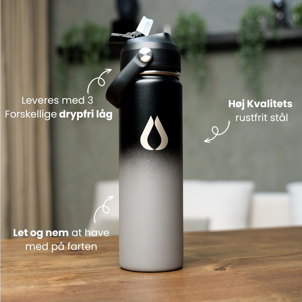 Flasken med tre forskellige låg gør det nemmere – og renere – at holde sig hydreret end