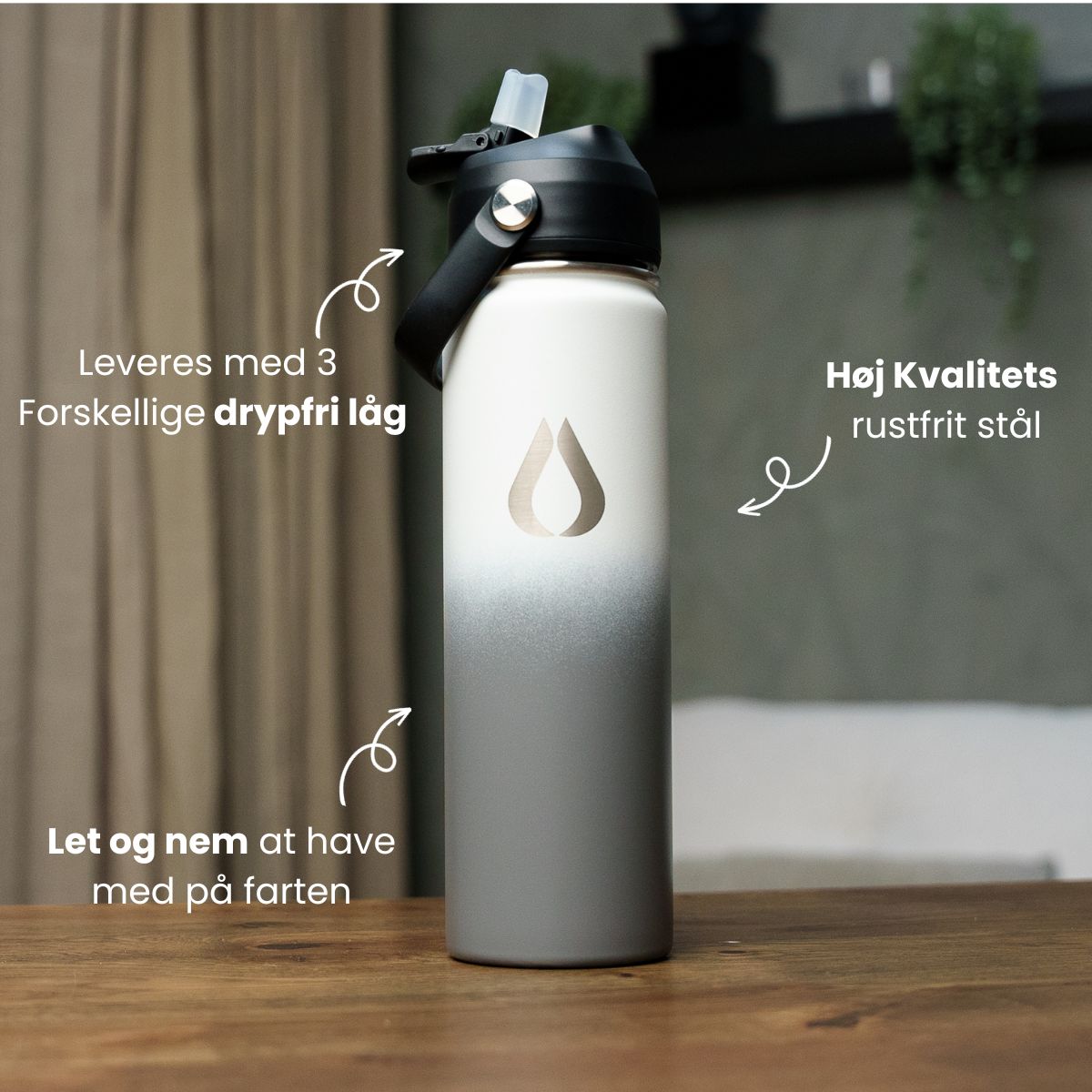 - Flasken kan nemt vaskes i hånden eller i opvaskemaskinen.
