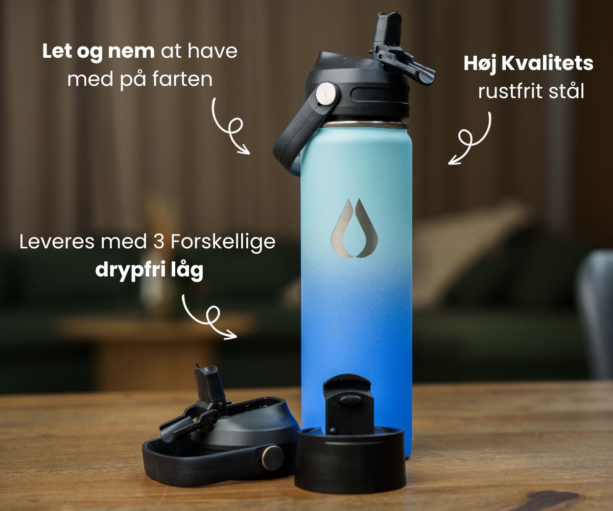 Flasken med tre forskellige låg gør det nemmere – og renere – at holde sig hydreret end