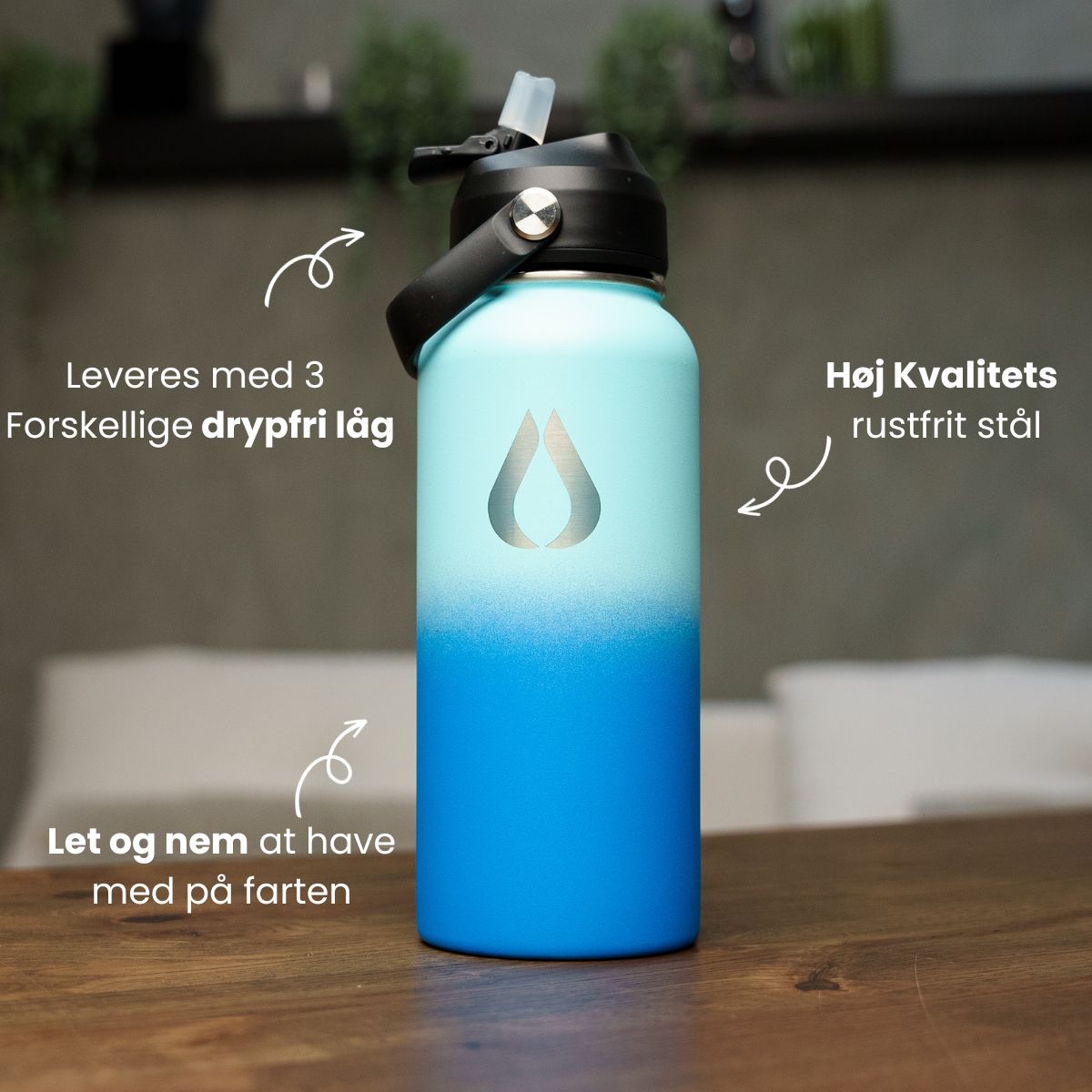Alle vores flasker at lavet af høj kvalitets rustfrit stål som ikke kan ruste og gør det super nemt at rengøre flasken. Flasken er med vakumisolering så væsken holder temperaturen i meget lang tid.