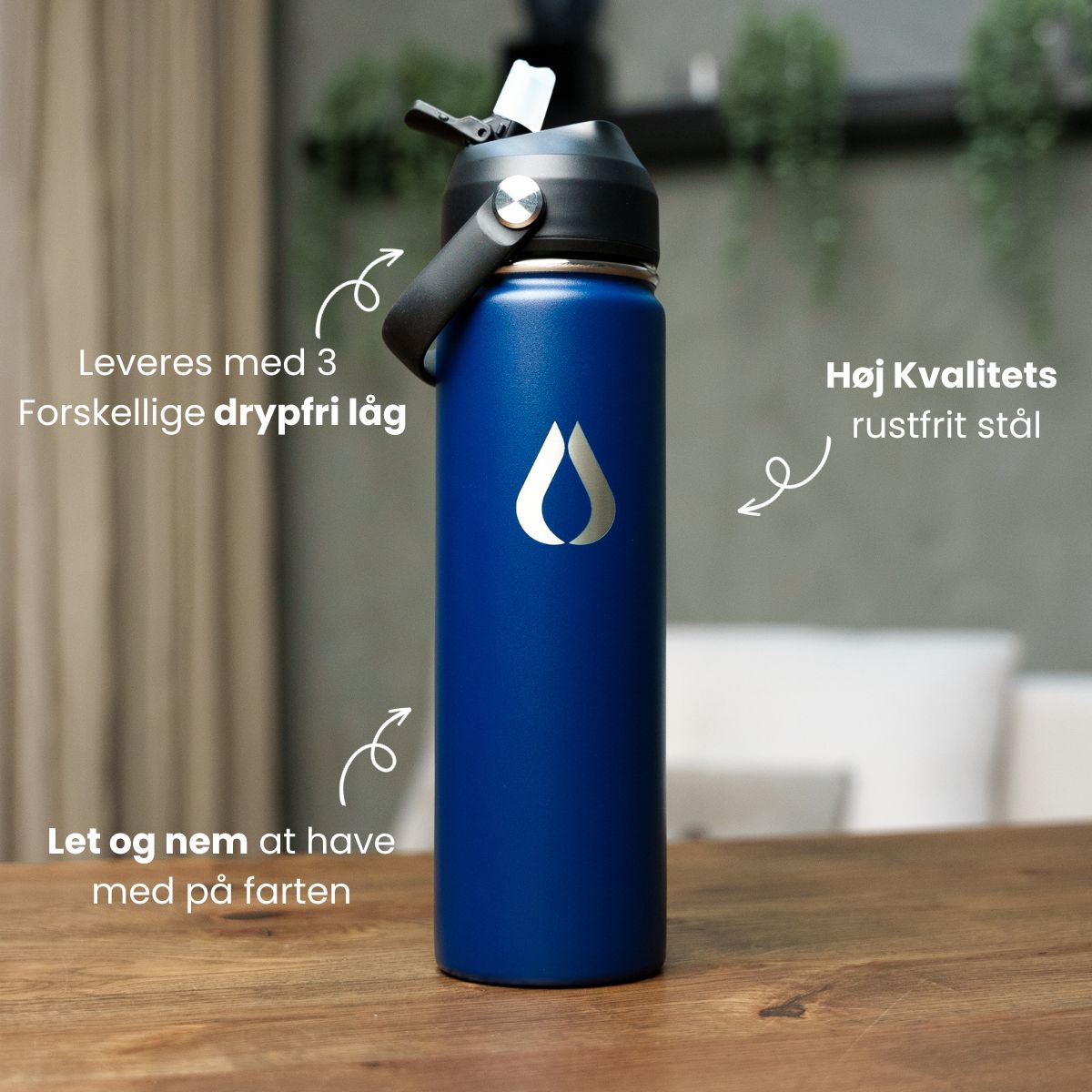 Flasken med tre forskellige låg gør det nemmere – og renere – at holde sig hydreret end